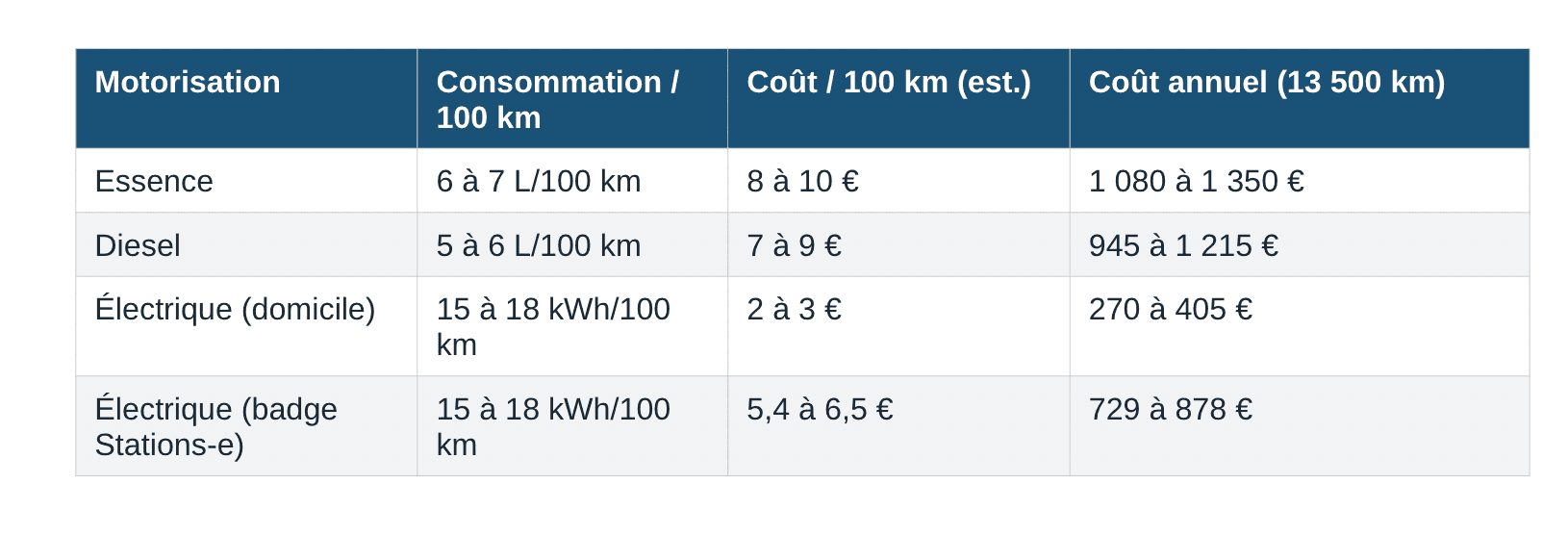 Gain annuel estimé sur l'énergie seule : entre 650 € et 900 € selon votre mode de recharge et votre kilométrage.