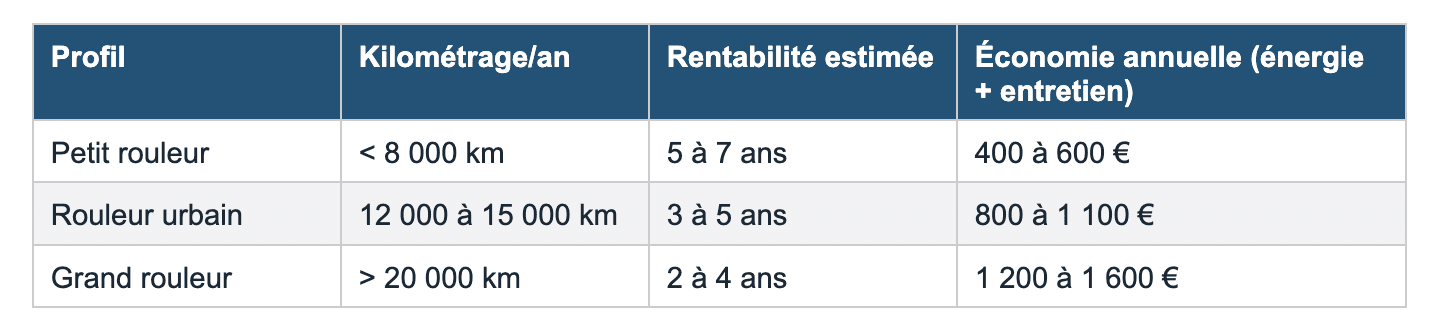 Le profil idéal reste le rouleur urbain : il cumule les économies sur l'énergie, profite pleinement des faibles coûts d'entretien, et bénéficie des aides à l'achat pour réduire le surcoût initial.